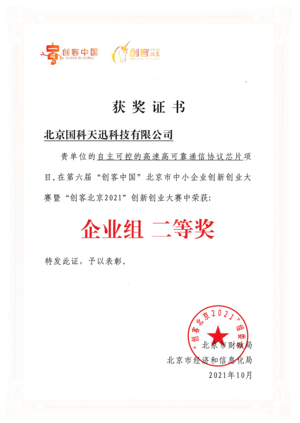 大赛自6月启动以来,受到广大中小企业和创客团队高度关注,吸引了全市近5千个项目报名。国科IM网页版页面登录-IM(中国)参赛的“自主可控的高速高可靠通信协议芯片”项目,经初赛、复赛两个月激烈角逐,在众多项目中表现抢眼,成功入围新一代信息技术领域决赛,经路演获企业组百强,后与百家企业共同比拼及专家组评审后最终获此殊荣。